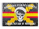 - Bandera de la Brigada Paracaidista con la calavera y bandera de España en el fondo.