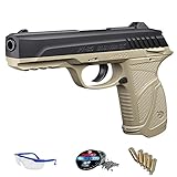 - El pack incluye: pistola, 250 balines (tipo según disponibilidad), 5 cargas CO2 y gafas de protección.