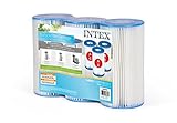 - Juego de 6 cartuchos de filtro Intex. Tipo A, para depuradora de piscina con cartuchos. 10,9 x 20,2 cm. Para depuradora 58604, 56638 y 56636.